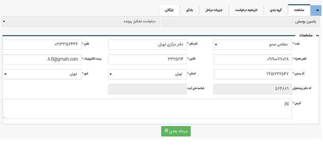 گام 5. در صورت صحت اطلاعات، با کلیک روی دکمه مرحله بعد، اطلاعات برای حراست اداره کل ارتباطات استان مربوطه ارسال میشود.